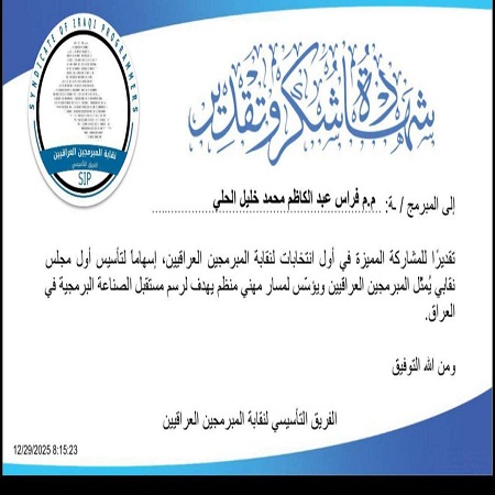 شارك أحد تدريسيي المدرس المساعد فراس عبدالكاظم محمد الحلي، في انتخابات نقابة المبرمجين العراقيين